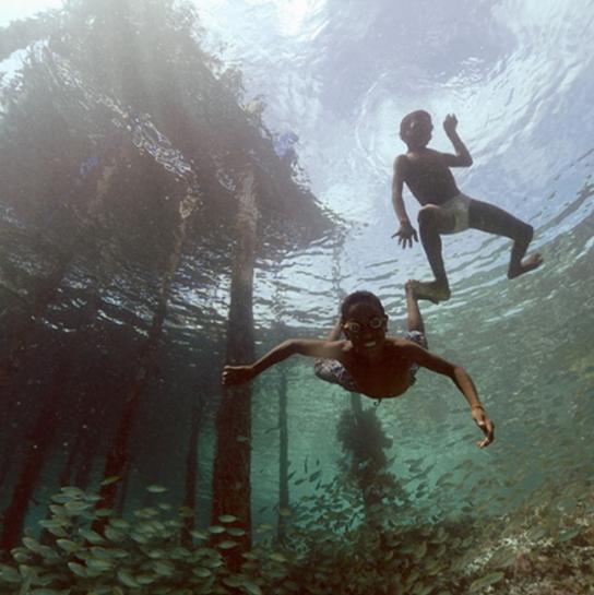 Tarpoenen tijdens hun dagrust. `s Nachts gaan ze op jacht.